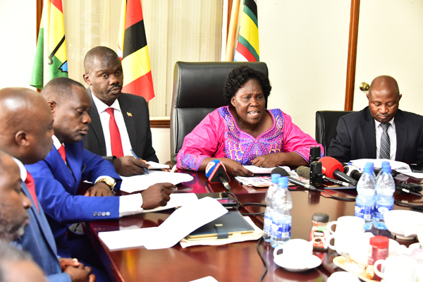 Leader of the Opposition, Betty Aol Ocan addressing the press about MPs arrested in relation to the election violence in Arua