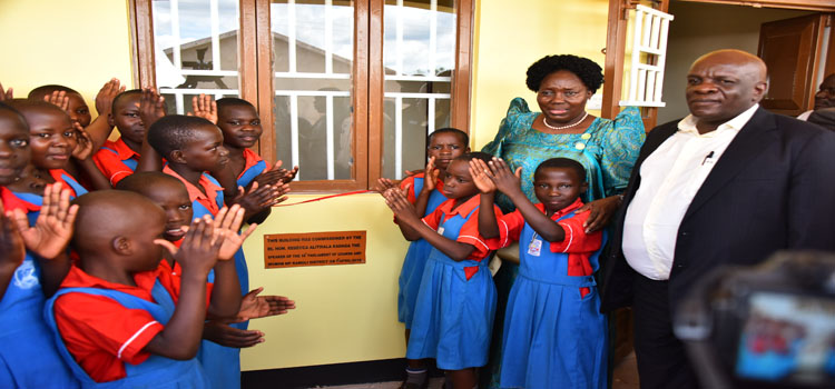 Speaker Rebecca Kadaga commisions classroom blocks in Kamuli district April 2018