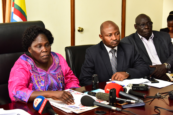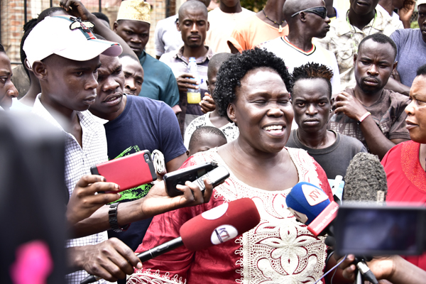 Leader of the Opposition, Betty Aol Ocan addressing the press about MPs arrested in relation to the election violence in Arua