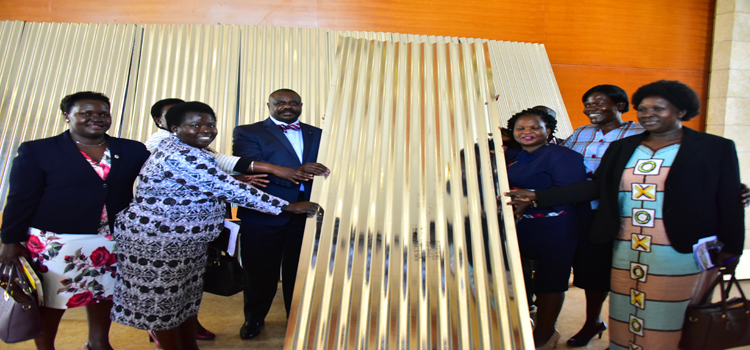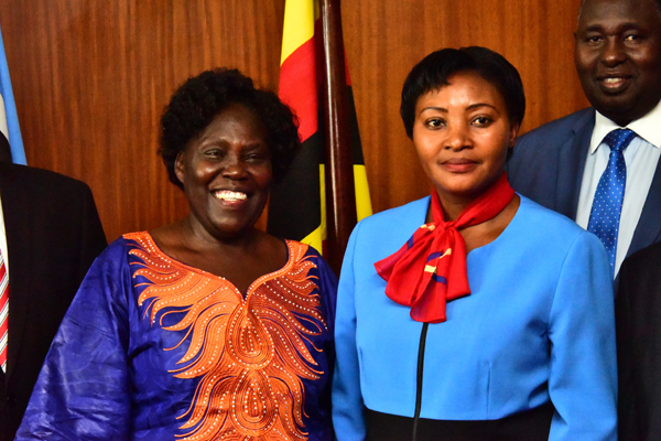 The outgoing LoP Winfred Kiiza hands over office to the new LoP Betty Aol Ocan on 14th August 2018
