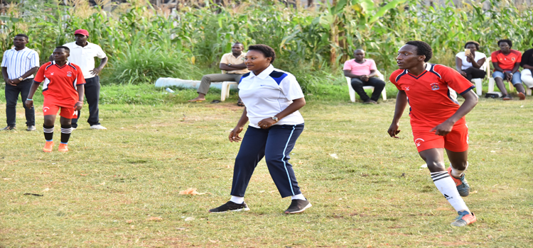 Hon Winfred Kiiza participates in the Corporate League at Kyadondo Rugby Grounds June 2018