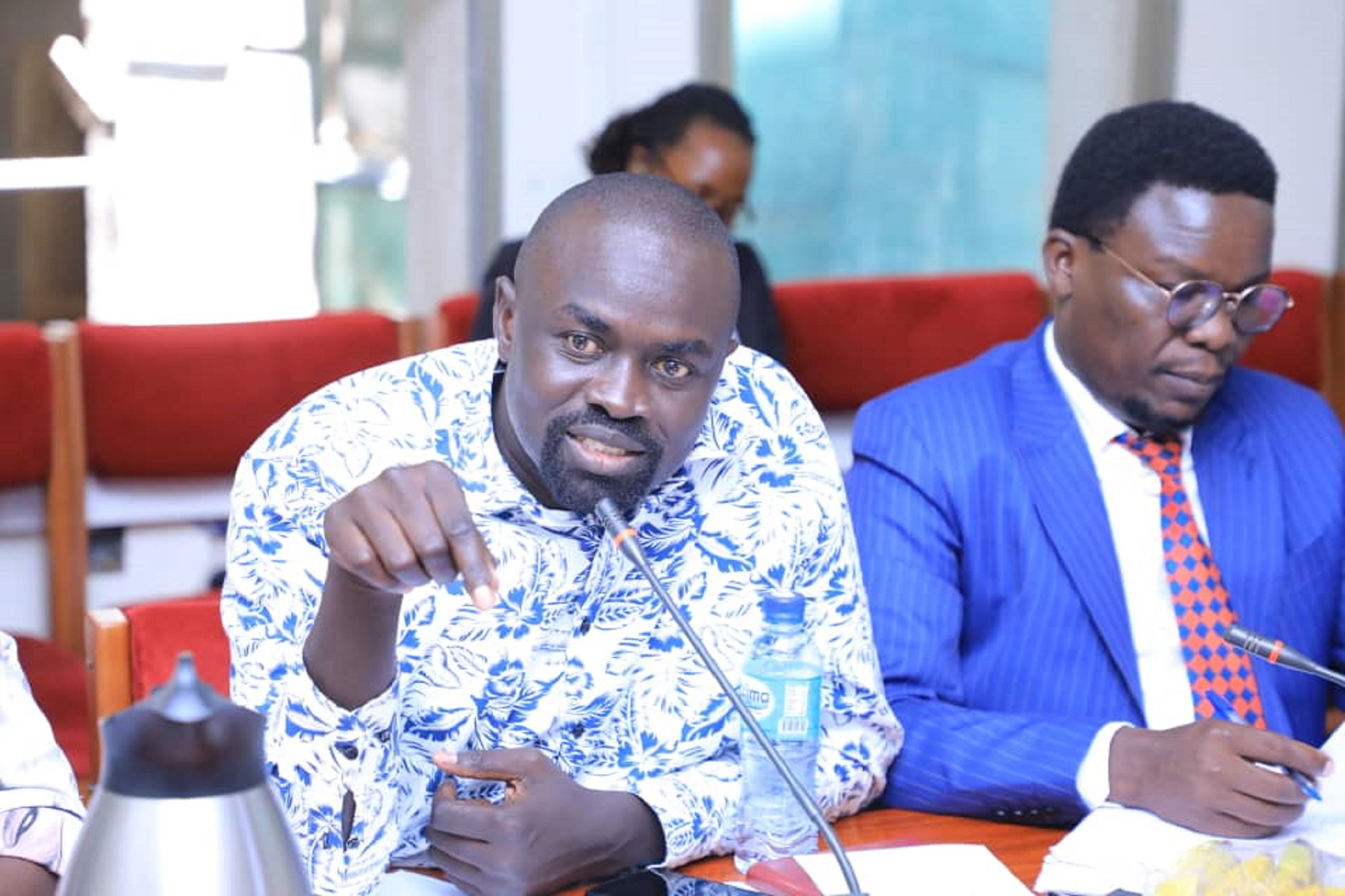 Hon. Patrick Aeku representing Soroti County on the NRM ticket presenting his views to the committee as Hon. Odur prepares his submission