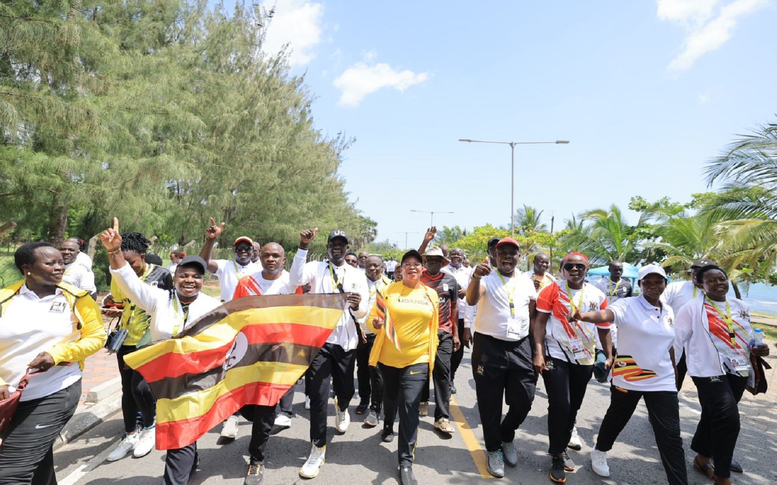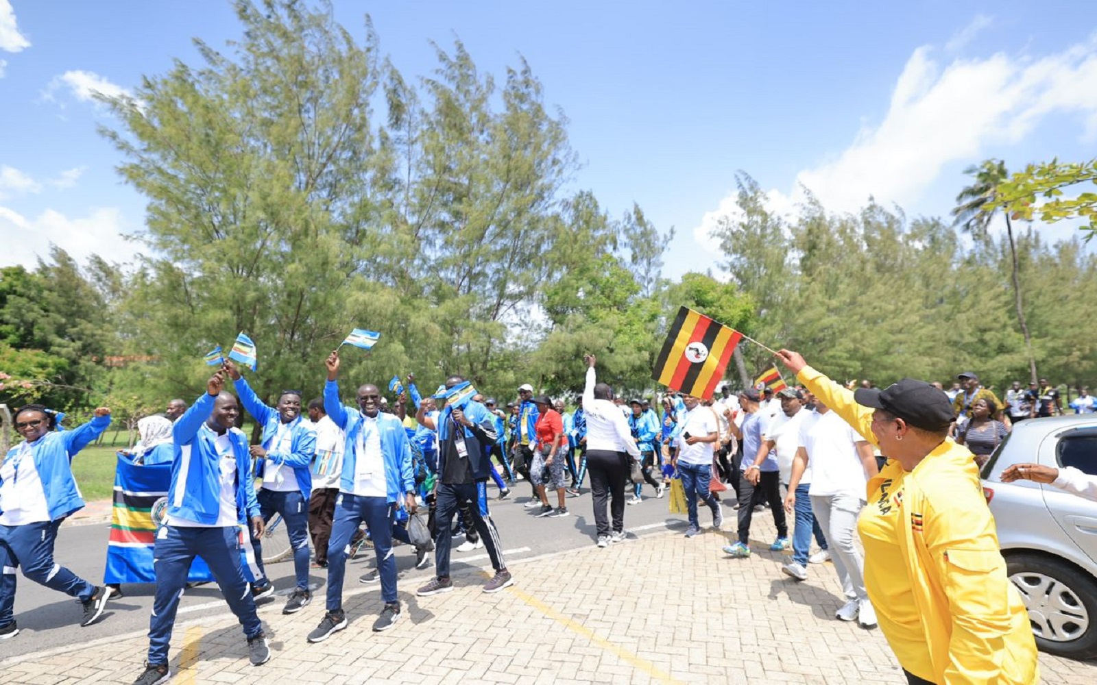 Speaker Among (in yellow track suit) with Team Uganda members marching through Mombasa City