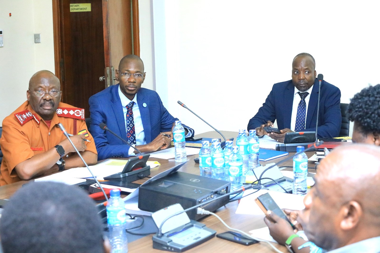 The Commissioner General of Uganda Prisons Service, Johnson Byabashaija (L); Kafuuzi  (c) and Odoi-Oywelowo at a sitting of the Committee on Human Rights before the Tuesday afternoon plenary