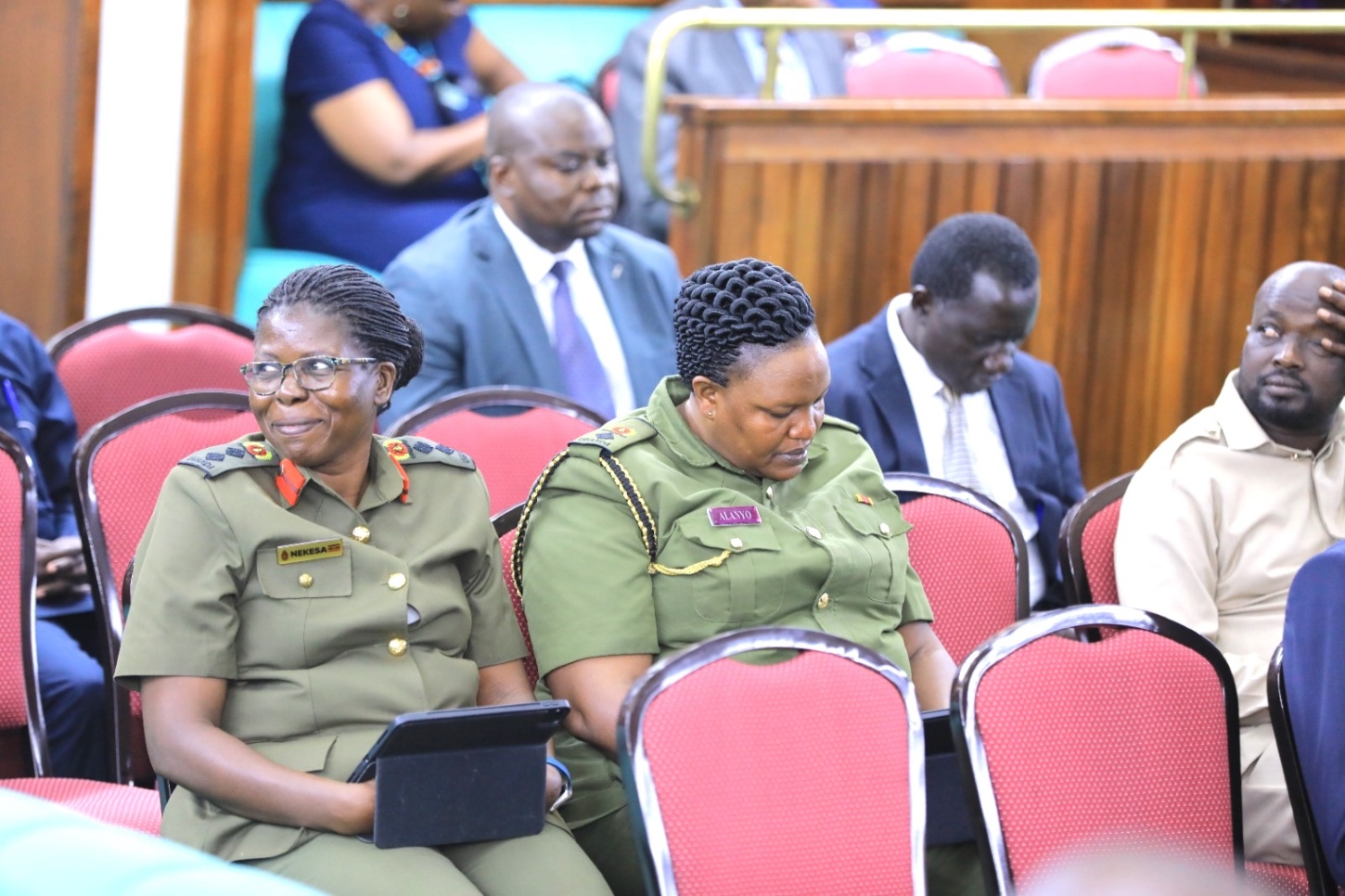 UPDF Representatives dressed in uniform. The representatives have a variety of uniform that they can wear to the House